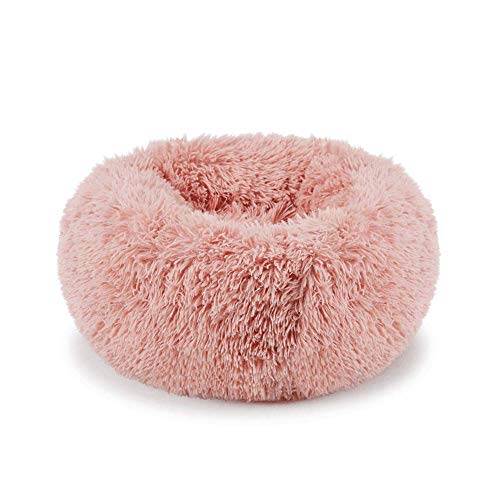 Muswanna ペットベッド ペットクッション ペットソファ ラウンド型 丸型 ドーナツペットベッド ぐっすり眠る ふわふわ もこもこ 暖かい 滑り止め 防寒 寒さ対策 洗える 猫用 小型犬用 ペット用品 サイズ選択可 カラー選択可(40x20cm, ピンク)