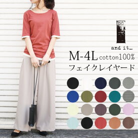 【クーポン利用で704円】【送料無料】カットソー トップス Tシャツ tシャツ ロング丈 レディース フェイクレイヤードくしゅくしゅシャーリング5分袖カットソー 五分袖 無地 ロングtシャツ プルオーバー 大きいサイズ【M】【L】【LL】【3L】【4L】【メール便5】