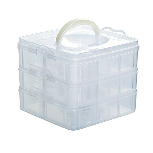 HOUSWEETY 三段 18仕切り 大容量 収納ボックス 透明 アクリル ビーズ 小物 金具 アクセサリー 収納ケース