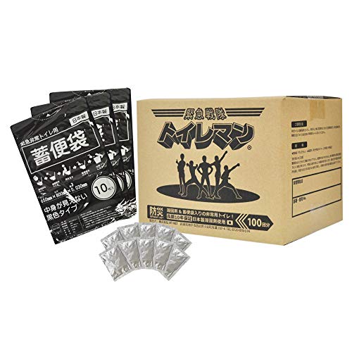 トイレマン 非常用 簡易トイレ 100回分 【日本製 凝固剤 10年保存】 汚物袋付 防災 災害 緊急