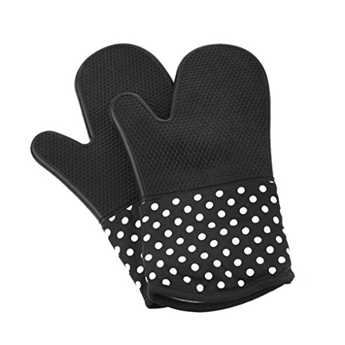 断熱オーブンミトン シリコン手袋 300℃ 耐熱ミトン 業務用 オーブンミット 滑り止め 厚手 手保護手袋 熱くない 鍋つかみ 安い 調理用手袋 おしゃれ キッチン手袋 電子レンジ オーブン バーベキュー BBQ 2枚セット ドット柄 デザイン ブラック