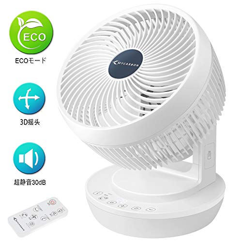 MYCARBON サーキュレーター 扇風機 リモコン付 静音 上下左右自動首振り 20畳 Turbo強力モード 省エネ 4段階風量 12時間タイマー機能付き タッチパネル ACモーター搭載 24ヶ月保証