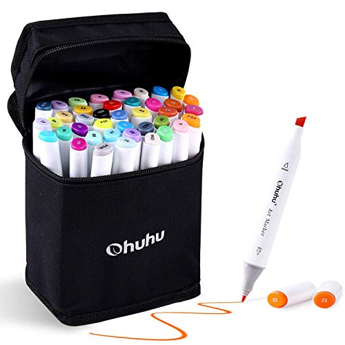 Ohuhu マーカーペン 40色 コミック用 油性 アルコールマーカー 太細両端 画材 キャリングケース付き