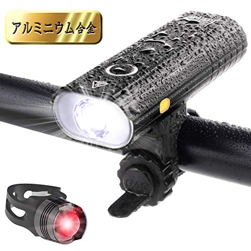 自転車 ライト LED 防水 800ルーメン 2600mAh 大容量電池 USB充電式 自転車用ヘッドライト クロスバイク ロードバイク ライト ゴムシート付き テールライト付属 バッテリーインジケーター サイクルライト bike light 高輝度 長時間 夜間 キャンプ ハイキング サイクリング 懐中電灯 5つ 照明モード 点滅 スポーツ 防災 緊急対応 (アルミニウム)