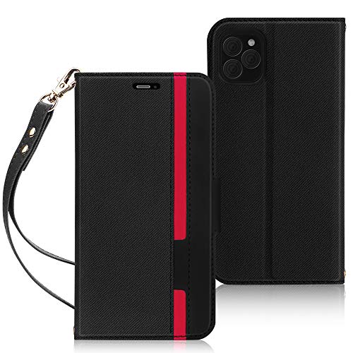iPhone 11 Pro ケース 5.8インチ 対応 FYY スマホケース iPhone 11 Pro カバー 手帳型 Qi ワイヤレス充電対応 カード収納 スタンド機能 ストラップ付き PUレザー 軽量 薄型 耐衝撃 [2019 iPhone 対応] (ブラック×レッド)