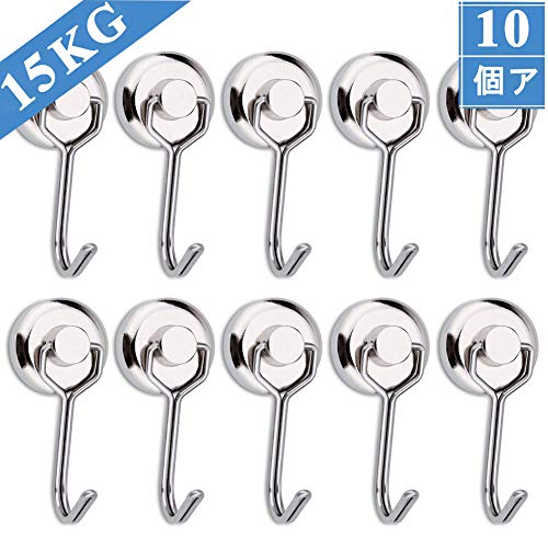 マグネット フック 超強力 回転 ネオジム磁石 フック 磁石付き 直径20mm 垂直耐荷重15kg 10個 シルバー 錆びない 防水 収納 反転 頑丈 物置 吊り キッチン用 オフィス用 風呂 冷蔵庫 浴室 屋外 シェード 壁掛け用