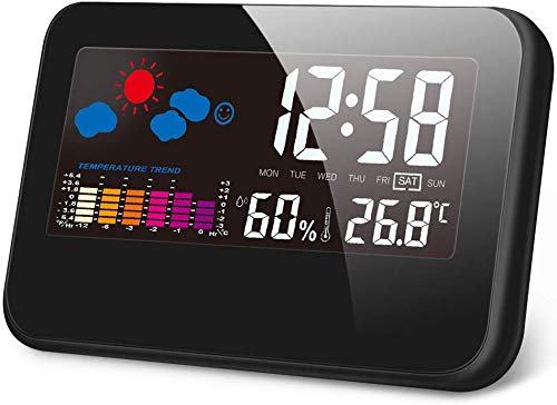 クロック 時計 目覚まし時計 置き時計 デジタル湿度計 LCD大画面 温度計 湿度計 室内温度と湿度/時間/月日/曜日/最高最低温湿度/温度傾向図表示 USB給電/電池 アラーム/センサー/バックライト/多機能
