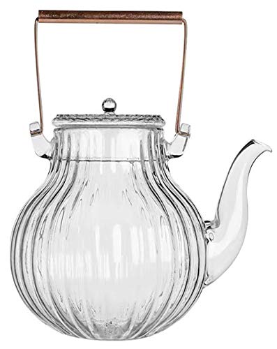 IwaiLoft 手作り 耐熱ガラス ティーポット 茶こし付き ガラス製ポット 銅製 持ち手 ジャンピング 紅茶ポット フルーツティー リーフティー 花茶 工芸茶 ハーフティー に 直火可 大容量 IL-G1968 (鶴首, 800ml)