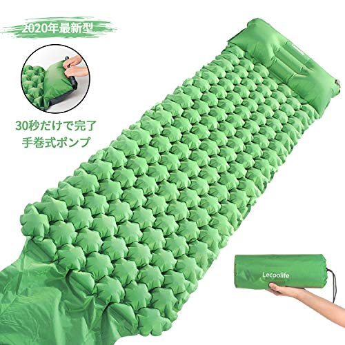 Lecoolife エアーマット キャンピングマット テントマット エアーベッド 超軽量型 耐水加工 アウトドア 寝袋 キャンプ キャンプマット 枕が付き 防災用品 山登り テント泊 車中泊