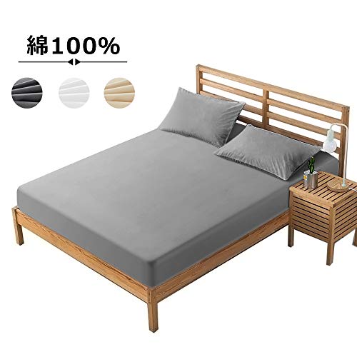 Wonwo ボックスシーツ ベッドカバー ベッドシーツ マットレスカバー シーツ 100%綿 毛玉なし 丸洗いOK ゴム付き マチ部分約30cm 秋冬用 グレー ダブル 140*200cm