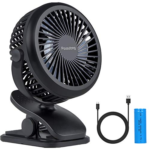 Pousutong 卓上扇風機 USB扇風機 携帯充電クリップ式 2500mah 360度回転 usb&乾電池両対応 大風量3段階調節 3枚羽根 省エネ 超静音 熱中症対策 (ブラック)