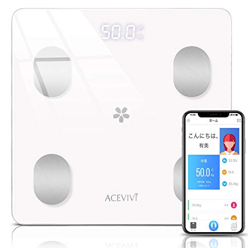 体重計 体組成計 【進化版14項測定 自動認識機能 】 ACEVIVI bluetooth体重計 ・体脂肪 高精度 データ自動記録 体重/体脂肪率/骨量/BMIなど14項健康指標 日本語アプリ 登録人数無制限 Apple Health ・Google Fit・Fitbitと連携 隠しLED表示 電池付属 1年間保証