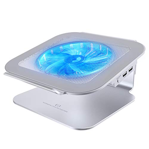 Liangstar ノートパソコンスタンド 冷却ファン付き 人間工学設計 6段階調整 アルミ合金製 優れた放熱性 オシャレ 回転台機能 滑り止めシリコン 4㎜厚さ 360度回転台 姿勢改善 猫背改善 シルバー