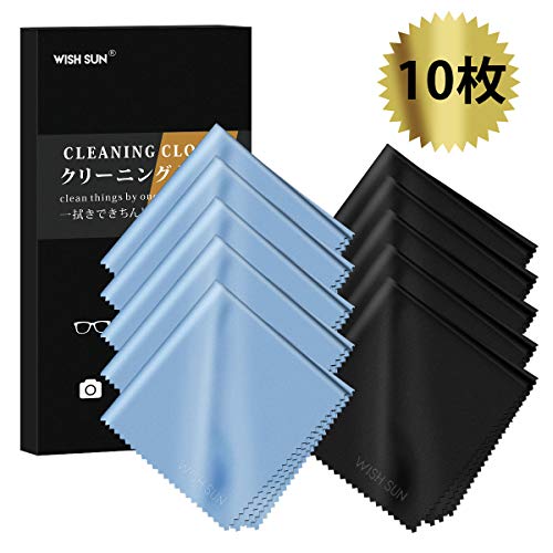 WISH SUN クリーニングクロス 【最新版、マイクロファイバー!】メガネ拭き 油膜や指紋を強力除去!液晶画面/パソコン/ガラス/鏡/金属/OA機器/メンテナンス用品等 ホコリが一瞬にして取れる 洗って何度でも使える 20㎝×20cmの10枚セット(黒5枚、水色5枚)