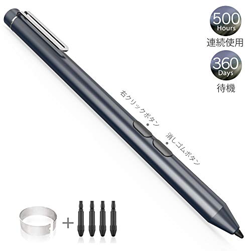 Heiyo Surface用 スタイラスペン 4096高感度筆圧 サーフェスペン AAAA電池式(単6) 500時間長時間連続使用 極細 替芯付属 surface向け Surface Pro 3~6/Surface Go/Surface Laptop 2~3/Book/Studioなどに対応 (黒)