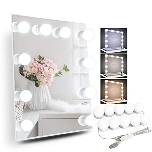 女優ミラー ledライト、Meqlin 配線が見えないデザインの3色の女優ライト ハリウッドライト、10個の電球の調光可能なハリウッドミラー ライト、どんなミラーサイズにもフィット