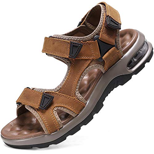 [visionreast] スポーツサンダル メンズ エアークッション 本革 幅広 マッサージ機能 人気サンダル ベルクロ 黒 厚底 かかとあり オフィス 歩きやすい 靴 アウトドア ビーチ 水陸両用 防臭防滑 24-28.5cm