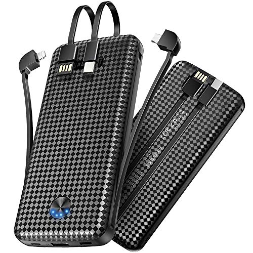 【2020最新型&4つケーブル内蔵&一体型】 モバイルバッテリー 10000mAh ケーブル内蔵 急速充電 USB充電 3in1出力(Lightning+Micro USB+Type C) 4台同時充電 大容量 軽量 バッテリー 携帯充電器 スマホ充電器 PSE認証済 防災グッズ 旅行/出張/地震/緊急用 アウトドア活動などの必携品 iPhone/iPad/Android等機種対応