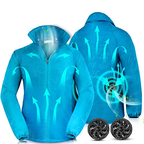 Yoyome 空調服 空調ウェア 作業服 エアコン服 薄手 扇風服 ワークブルゾン 作業ジャケット 夏 長袖 熱中症対策 紫外線防止 日焼け止め UVカット 防水 速乾 通気 強冷却ファン付き メンズ レディース 現場工事 アウトドア 日本語説明書付き