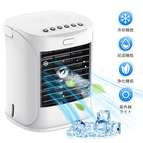 Moucit 冷風扇 冷風機 卓上冷風機 扇風機 卓上 クーラー 小型 静音 USB給電式 ミニエアコン ミニ冷風扇 強力 省エネ 紫外線ライト 抗菌 空気清浄 冷却機能 加湿機能 氷 水入れ 3段階風量切替 ミニクーラー 500水タンク ハンドル/防カビフィルター付き 軽量 コンパクト 熱中症対策 自宅用 オフィス 寝室 おしゃれ 日本語取扱説明書 一年保証 ホワイト