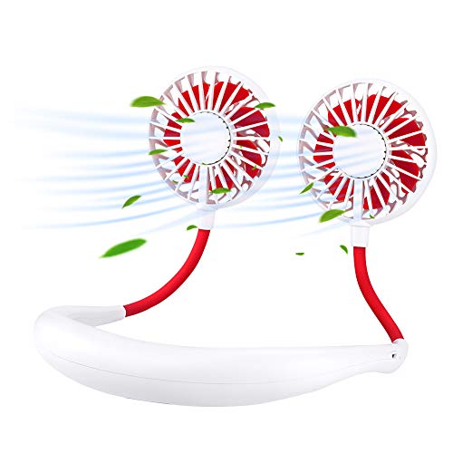 首掛け扇風機 携帯扇風機 静音 強風 小型 首掛けファン ポータブル ハンズフリー カラフル LEDライト 最大作動時間8h 360°角度調整 usbファン 3段階風量調整 USB充電式 コードレス 折りたたみ可能 ホワイト