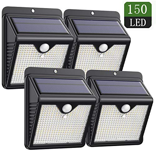 【2020最新高輝度】センサーライト 150LED ソーラーライト 屋外照明 人感センサーライト 知能モード 太陽光発電 防水 防犯ライト ガーデンライト 玄関/庭/ガレージ/駐車場 4個セット