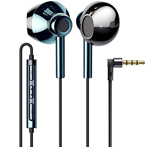 【新登場モデル】マイク付きイヤホン 有線 インナーイヤー型イヤフォン HD通話可能 QUADダイヤフラム デュアルドライバー構造 重低音重視 ハイレゾ相当の高音質 リモコン(3ボタン)付 音量調整 3.5mmプラグ iPhone/Android/PCなどに対応 日本語取扱説明書 Linklike Classic 2(ダークグリーン)