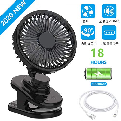 Tomoda 卓上扇風機 USB 扇風機 クリップ式 自動首振り ミニファン 車載扇風機 ベビーカーファン 超静音 風量3段階調節 360度角度調整 長時間連続使用 usb充電式 LED電量表示 軽量 ミニ扇風機