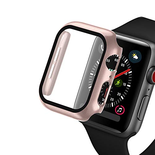 OJBSEN Apple Watch Series5/Series4 40mm ケース, Apple Watch 超薄型フィルム 液晶全面保護カバー, 日本旭硝子材 + PCフレーム 耐衝撃 傷防止 軽量 脱着簡単 対応 新しい アップルウォッチシリーズ 5/4 カバー 40mm -ローズピンク