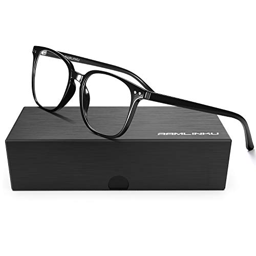 Ramlinku ブルーライトカット メガネ PCメガネ パソコンメガネ 用メガネ pc メガネ ブルーライト 超軽量 UVカット 紫外線カット ウェリントン 男女兼用 目の疲れを緩和する 度なし (ブラック)