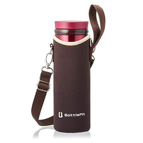BottlePit 水筒カバー 高品質ボトルホルダー こども 女の子 男の子 500mL水筒用 携帯用ショルダーストラップ (ブラウン)