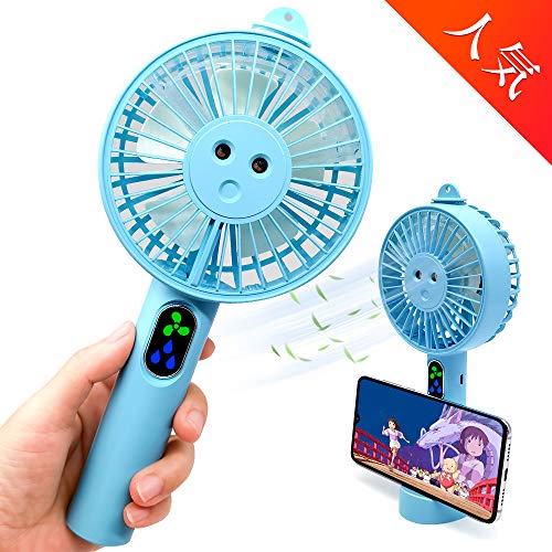 FYL【2020年最新】4in1ミストファン 携帯扇風機 オフィス用小型扇風機 ミニUSB充電式 手持ち/卓上置き両用 噴霧加湿 風量3段階調節 充電式ハンディファン送風機 LEDディスプレイ 夏 アウトドア 熱中症 暑さ対策(水色)