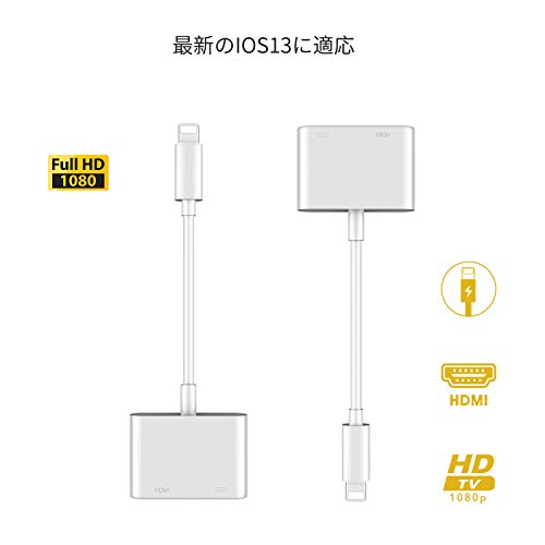 iPhone HDMI Lightning 変換ケーブル Digital AV アダプタ 接続ケーブル HDMI Lightning アダプタ 1080P 高解像度 設定不要 簡単接続 同時 ライトニング充電 大画面 音声同期出力 IOS13対応