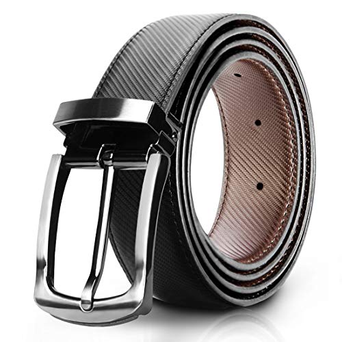 KTMOUW ベルト メンズ ビジネス カーボンレザー スーツベルト 革 リバーシブル 両面用 高級感 紳士 おおきいサイズ 箱付き ブラック ブラウン 115 125 135cm