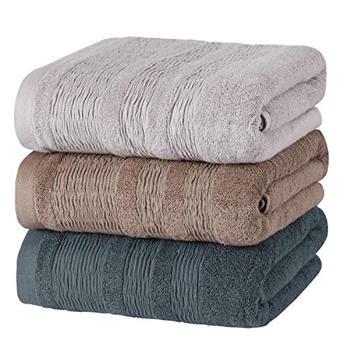 Levana バスタオル 大判 バスタオル 純綿 タオル バスタオル セット 柔らかい肌触り 抜群な吸水性と通気性 瞬間吸水 速乾 抗菌防臭 ホテル仕様 家庭/ホテル/業務/スポーツなど用 (3色3枚セット, 140*70cm)