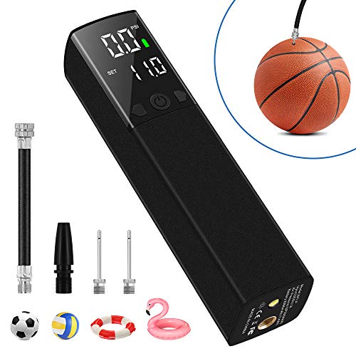 電動ボールポンプ ボールエアーポンプ バスケットボール空気入れ サッカー電動空気入れ 空気ポンプインフレーター ボール空気入れ 空気針 デジタルインフレーター デジタルインフレーター 小型エアポンプ USB充電式 自動停止 LED懐中ライト パワー・バンク搭載 2000mAh大容量バッテリー 小型携帯便利 空気圧指定可能 LCDデジタル表示 スポーツボール/浮輪適用 (黒)