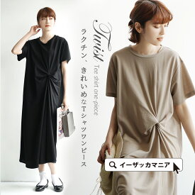 【クーポンで半額】ワンピース / Tシャツワンピ レディース トップス ワンピ ロングワンピース ロングワンピ ロング 膝下 ひざ下 Tシャツワンピース Tシャツ 半袖 半そで 丸首 ゆったり ツイスト 無地 薄手 春夏 【メール便可22】◆ツイストコンシャス ワンピース