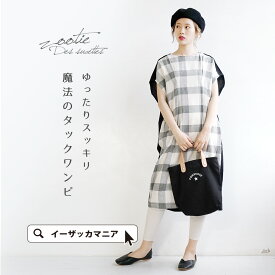 【クーポンで半額】 ワンピース / シックなモノトーンチェックの半袖ワンピ。 レディース 綿100% コットン 大きいサイズ 夏 【メール便可22】◆zootie(ズーティー):モノトーンチェック フロントタックワンピース