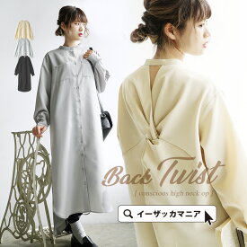 【クーポンで半額】ワンピース /ロングワンピース 。 レディース トップス ロングワンピ シャツワンピース シャツワンピ シャツ 長袖 長そで 膝下 スタンドカラー ハイネック ロング マキシ ゆったり 前開き ◆バックツイスト ポケット付きシャツワンピース