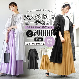 【特別送料無料!】 コーディネートセット カラーが選べる!お得な3点 セット ! レディース 服 ワンピース ロング シャツワンピース タンクトップ フレンチスリーブ ロングスカート 膝下 綿100% 夏 ◆ゆるふわシルエットで作る大人ガーリーコーデセット【返品交換不可】