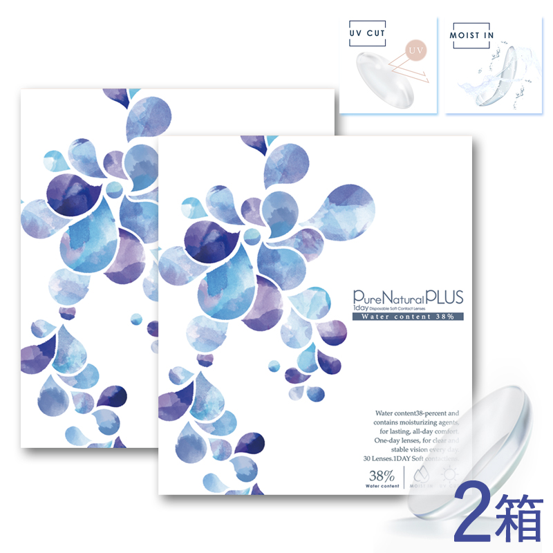 【2箱】ピュアナチュラルPLUS UVモイスト 1箱30枚入 【送料無料】【ネコポス対応】PureNatural PLUS UV&MOIST コンタクトレンズ 1日使い捨て ワンデー 1day ピュアナチュラルワンデー ピュアナチュラルプラス うるおい成分 UVカット