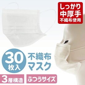 30枚入 不織布マスク ふつうサイズ 使い捨てマスク 3層構造 立体 レギュラーサイズ 男女兼用 防護 花粉症 ほこり ウイルス 高密度フィルター ノーズワイヤー 使い捨て 三層 大容量【同梱不可】[在庫あり 即納 送料無料]