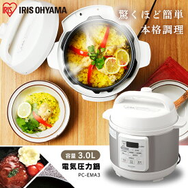 [100円OFFクーポン発行中]電気圧力鍋 圧力鍋 電気 3.0L ホワイト PC-EMA3-W送料無料 電気圧力鍋 ナベ なべ 電気鍋 圧力なべ 手軽 簡単 使いやすい 料理 調理家電 圧力 圧力調理 鍋 なべ 鍋料理 電器調理器 電気調理鍋 アイリスオーヤマ