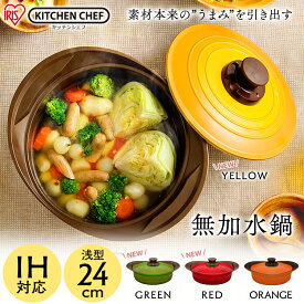 [500円OFFクーポン発行中]鍋 ih 24cm 浅型 MKS-P24S オレンジ 送料無料 両手鍋 ih対応 無加水鍋 24cm 無加水調理鍋 なべ 無水調理 無加水 アイリスオーヤマ