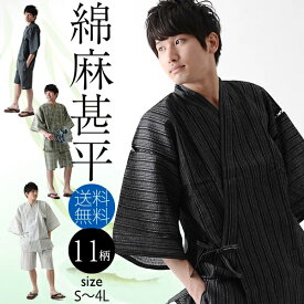 (甚平クーポンで10%OFF 8/2迄)【送料無料】甚平 涼しい 綿麻 甚平 メンズ 大きいサイズ 部屋着 花火大会に 男性 ルームウェア 部屋着 上下セット サイズ:S M L LL 3L 4L 敬老の日 ギフト 甚平 プレゼント 父の日 <R>【ラッピング無料】【楽ギフ_包装】【メール便不可】