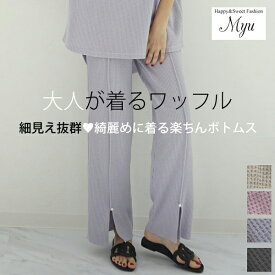 \楽天マラソン限定!50%クーポン配布中♪/\楽天ランキング受賞!/ワンマイル【大人ワッフルきれいめ美脚パンツ(Dnm55)】ボトムス 楽ちん ゆったり パール 夏 体型カバー おしゃれ レディース Myu bm 4980【メール便OK】2006