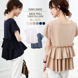 クーポン利用で50%OFF 楽天1位 バックフリルブラウス 2段フリル フリルブラウス トップス カットソー レディース トップス 上品 大人可愛い ティアードフリルブラウス