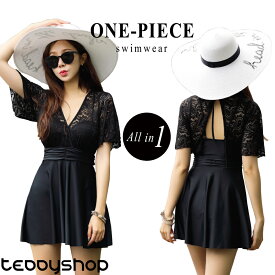 ワンピース水着 体型カバー水着 レディース ミセス ママ水着 20代 30代 40代 50代 オールインワン 可愛い ぽっちゃり レース セクシー カバーアップ バックシャン 大きいサイズ 3L 13号 4L 15号 黒 お腹 お尻 太ももカバー出来る ショートパンツ一体型 露出控えめ 即日発送